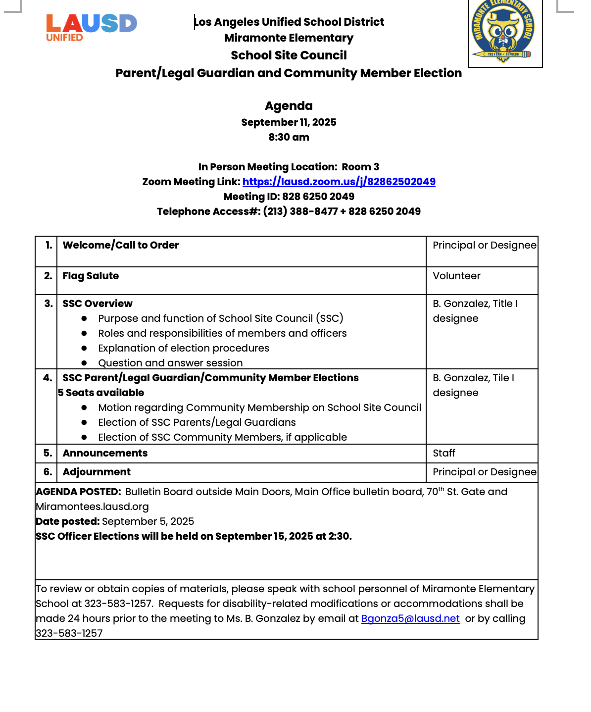 SSC Parent/Community Election Meeting Agenda / Agenda de SSC para Elecciones de Padres y Comunidad Attached Files 2025-2026 SSC Agenda Parent Elections.docx